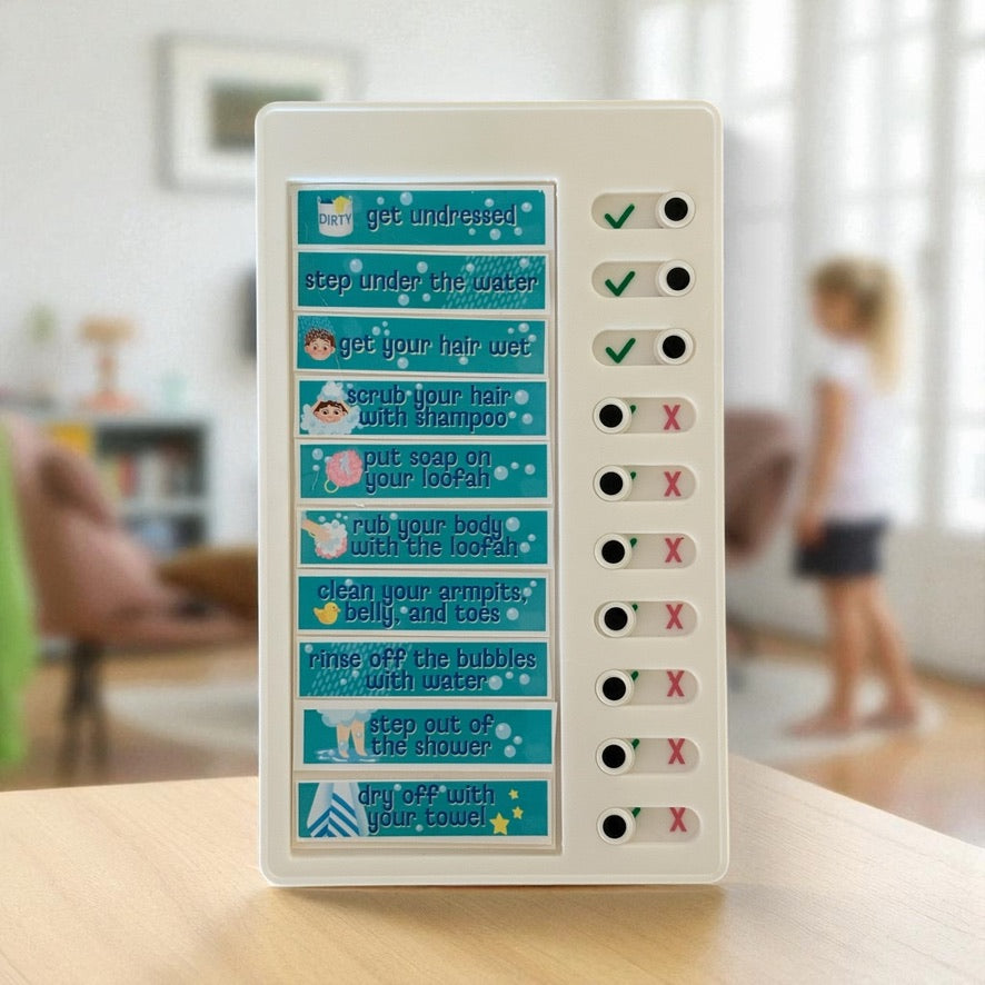 Whether a child is learning hygiene skills for the very first time or needs extra support along the way, our products make each step easier and more empowering. Every item is designed to adapt, include, and encourage. Our step-by-step visuals and beginner-friendly tools reflect our commitment to adaptable design and inclusive support for every individual.